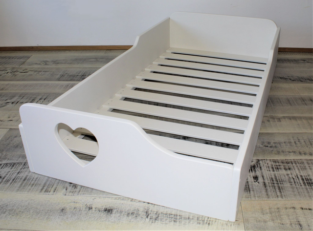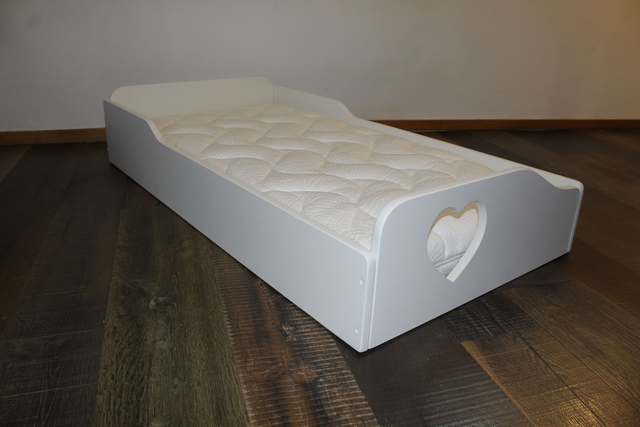 Questo lettino montessoriano è realizzato artigianalmente in legno con cura e amore, perfetto per accompagnare la crescita del tuo bambino in modo sicuro e naturale. Sia la testiera che la pediera sono impreziosite da dolci cuoricini intagliate, un dettaglio che rende il letto un vero angolo dei sogni.
