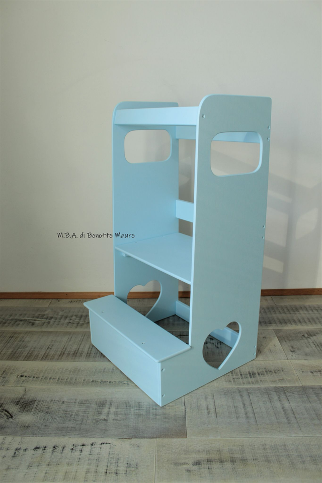 Torre di Apprendimento è l'accessorio essenziale per la vita quotidiana del tuo bambino! E' progettata per favorire l'autonomia e l'intraprendenza fin dalla più tenera età. Con la mia torre di apprendimento, il tuo bambino potrà finalmente raggiungere il lavandino o il piano di lavoro della cucina in totale sicurezza, permettendogli di partecipare attivamente alle attività quotidiane della casa. Che sia per lavarsi i denti, aiutare a cucinare o semplicemente per osservare e imparare, la nostra Learning Tower renderà ogni momento un'esperienza di apprendimento e divertimento. La struttura robusta è progettata per durare nel tempo, diventando un prezioso alleato nella crescita e nello sviluppo del tuo bambino.